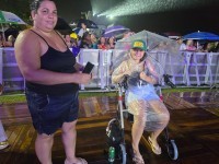 No outro lado, também encostada na grade, a estudante Brenda Costa, de 18 anos, também não se deixou intimidar pelo tempo fechado. Ao lado do amigo Caio Medeiros, de 20, ela resumiu o sentimento do público presente com bom humor: “O Mumuzinho merece! E vale a gente sair de casa mesmo debaixo de chuva pra ser feliz”.