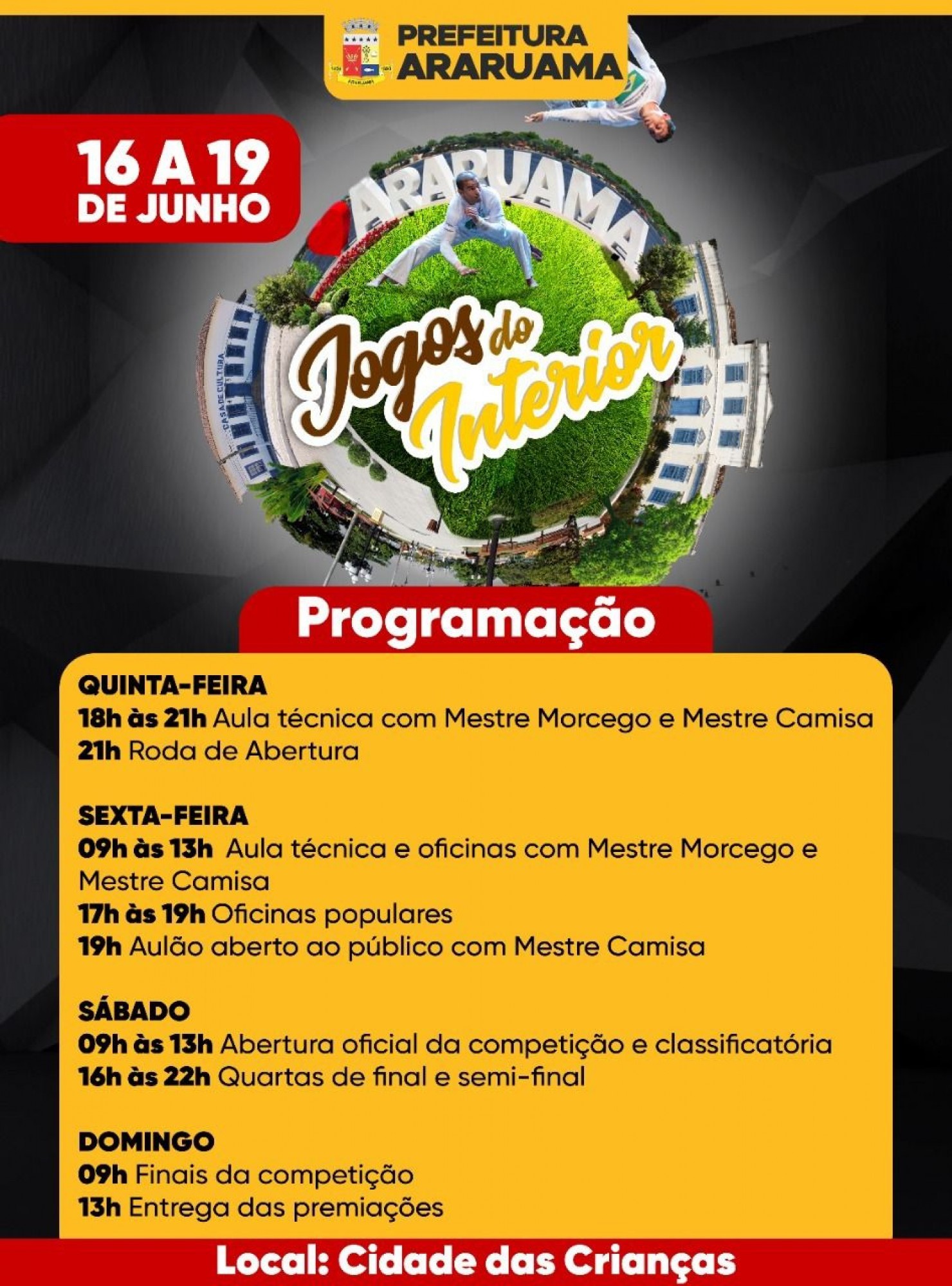 A escola Abadá Capoeira é a responsável pela realização do evento, com o apoio da Prefeitura de Araruama.