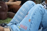 Maria Eduarda de Souza, de 20 anos, também chegou cedo pra ficar colada à grade. Para chamar atenção do ídolo, levou um cartaz, e um kit especial para aguentar até a hora do show; "Muita água, comida leve, guarda-sol e carregador de celular portátil, pra não ficar sem bateria", ensinou.