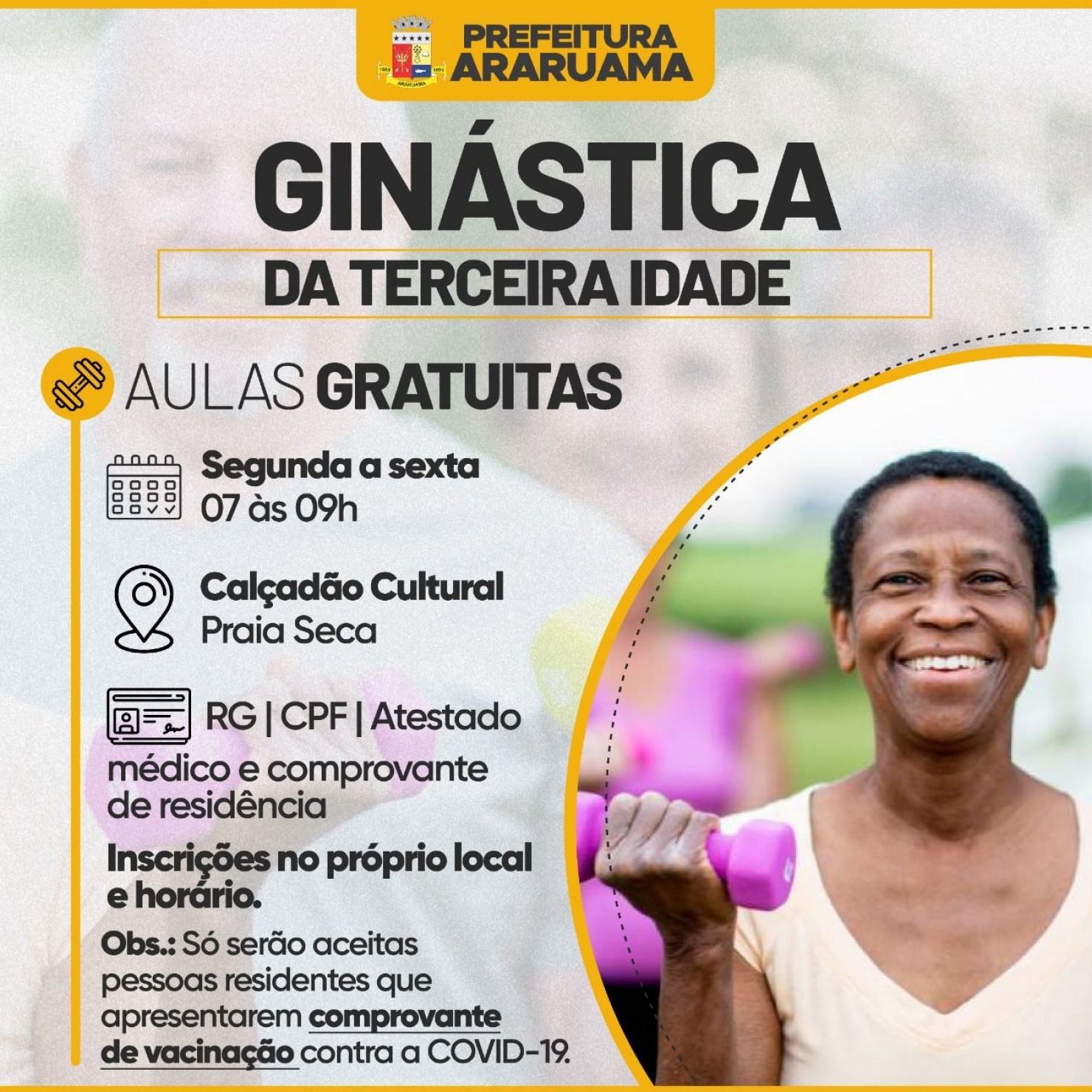 As aulas de ginástica acontecem de segunda a sexta-feira, entre 07h e 09h, no Calçadão Cultural de Praia Seca.