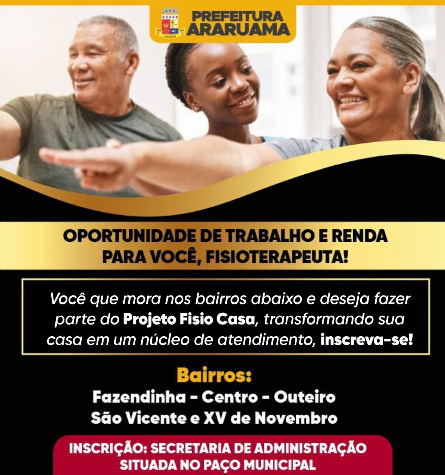 As inscrições para o “Programa Fisio Casa” são gratuitas e devem ser feitas presencialmente na Secretaria de Administração, que fica no Paço Municipal, no endereço: Rua John Kennedy, número, 120, centro, das 09h às 18h.