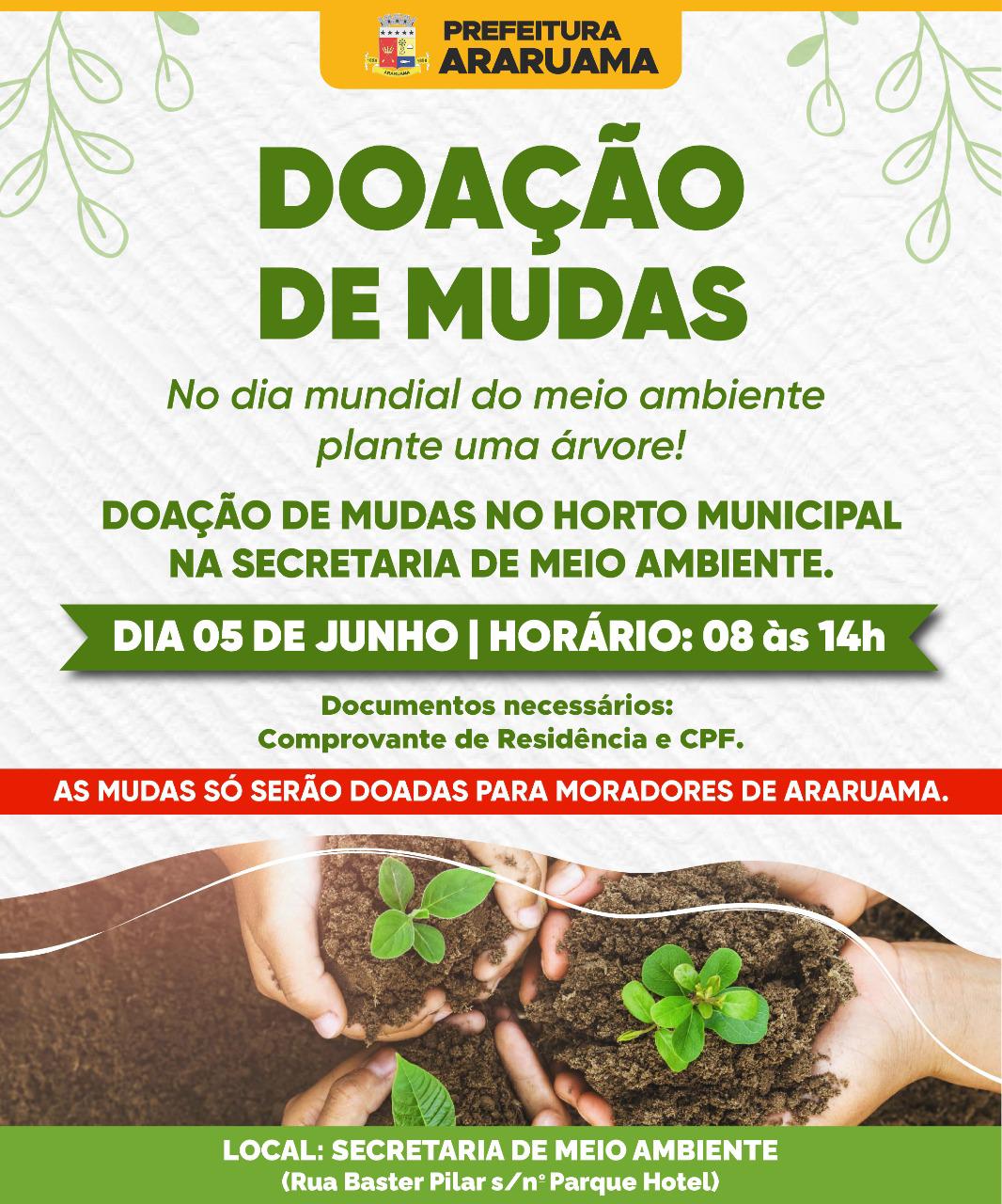 Para isso, fará a distribuição gratuita de mudas aos moradores da cidade. Cada pessoa vai poder receber uma muda.