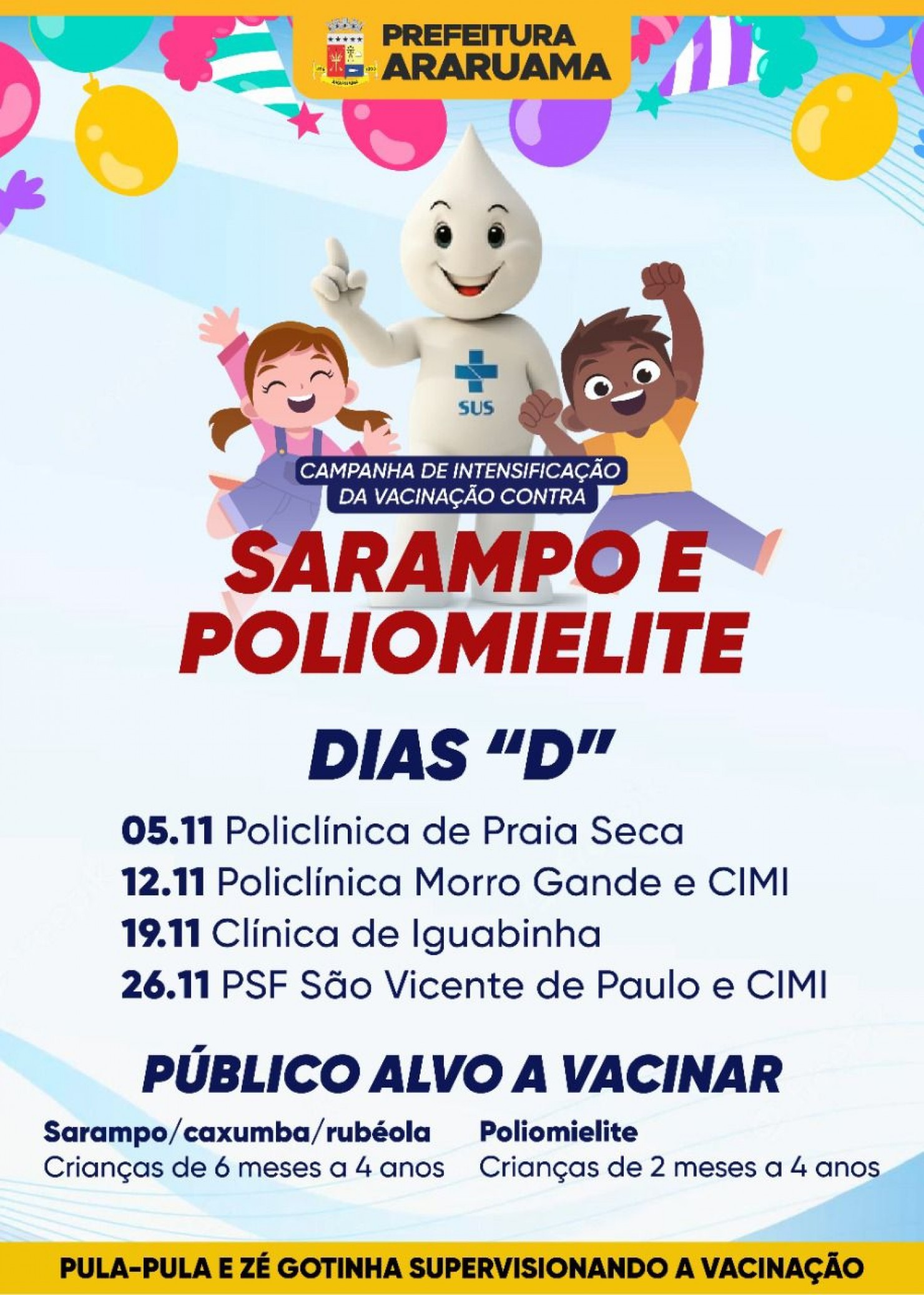 Serão vacinadas contra o sarampo, caxumba e rubéola (crianças de 6 meses a 4 anos) e contra a poliomielite (crianças de 2 meses a 4 anos).