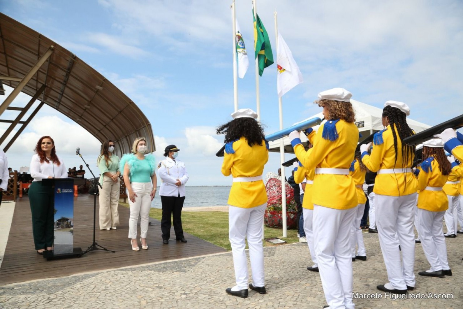 O primeiro ato foi o tradicional hasteamento das bandeiras do Brasil, do Estado do Rio de Janeiro e do município de Araruama.