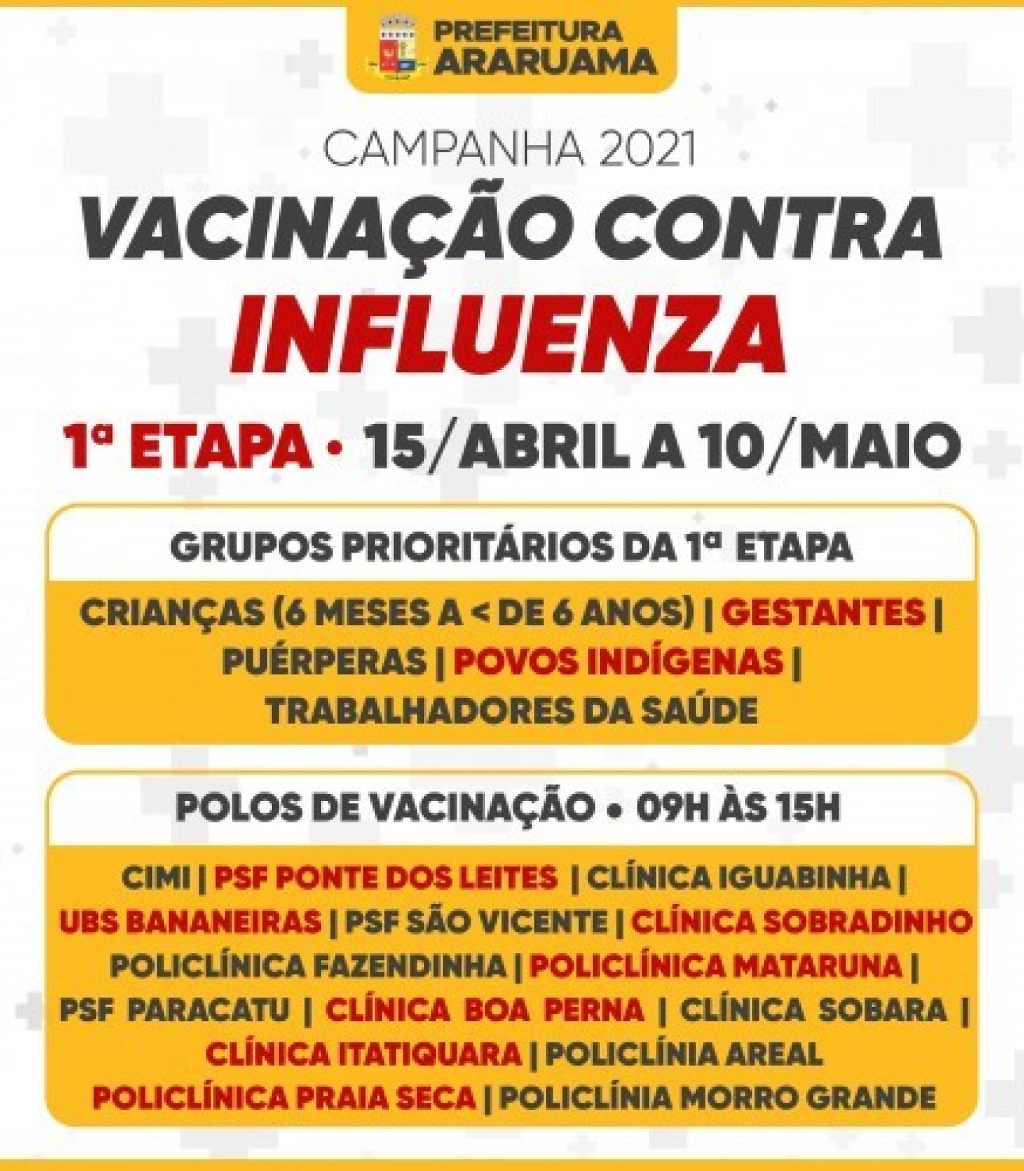 E atenção! Segundo o Ministério da Saúde quem tomou a vacina contra Covid-19 (primeira ou segunda dose) deve esperar um intervalo de 15 dias para tomar a vacina contra a Influenza (gripe).
