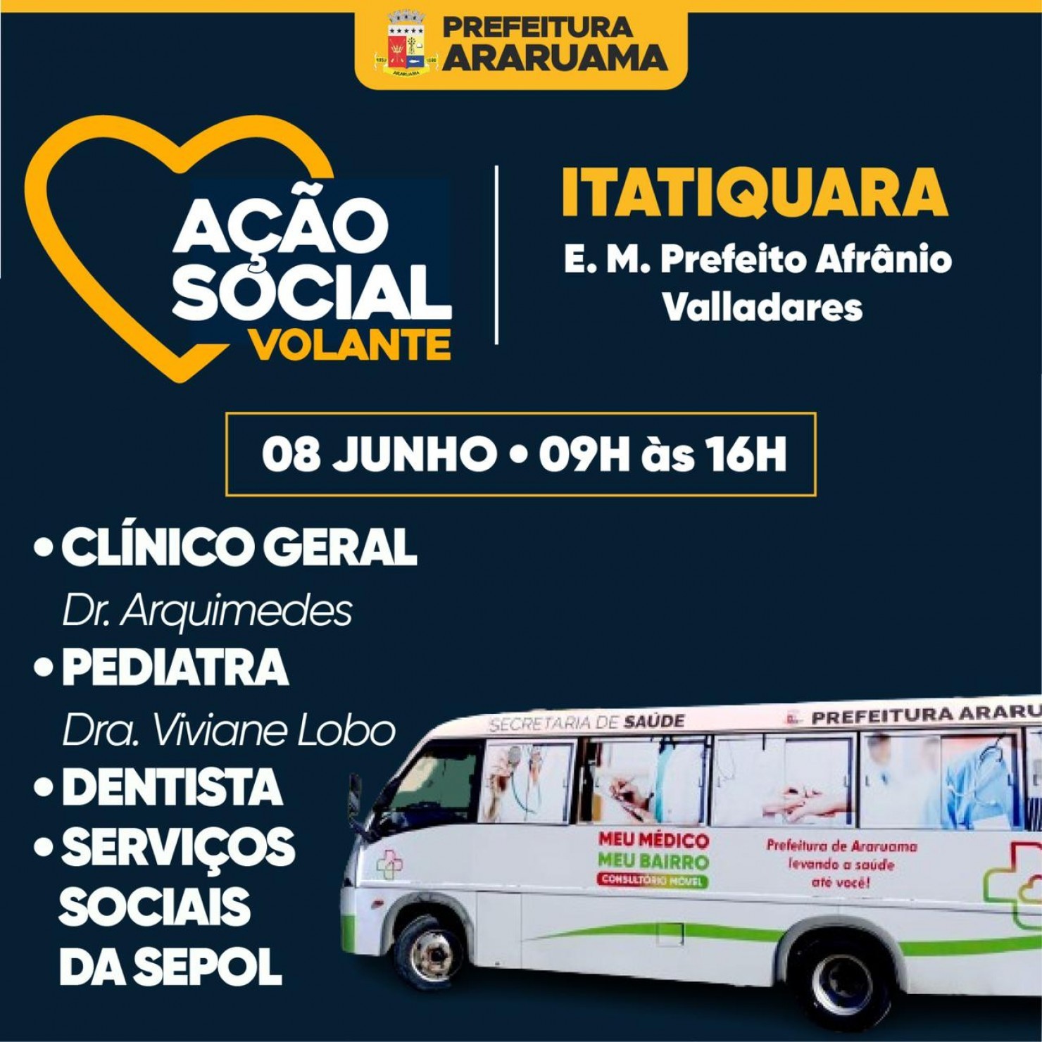 Serão disponibilizados aos moradores atendimentos na área da saúde, com o médico clínico geral, dr. Arquimedes Torres Lima e a pediatra, dra. Viviane Lobo; além de dentista móvel, aferição de pressão, medição de glicemia, nutrição e vacinação contra a gripe.