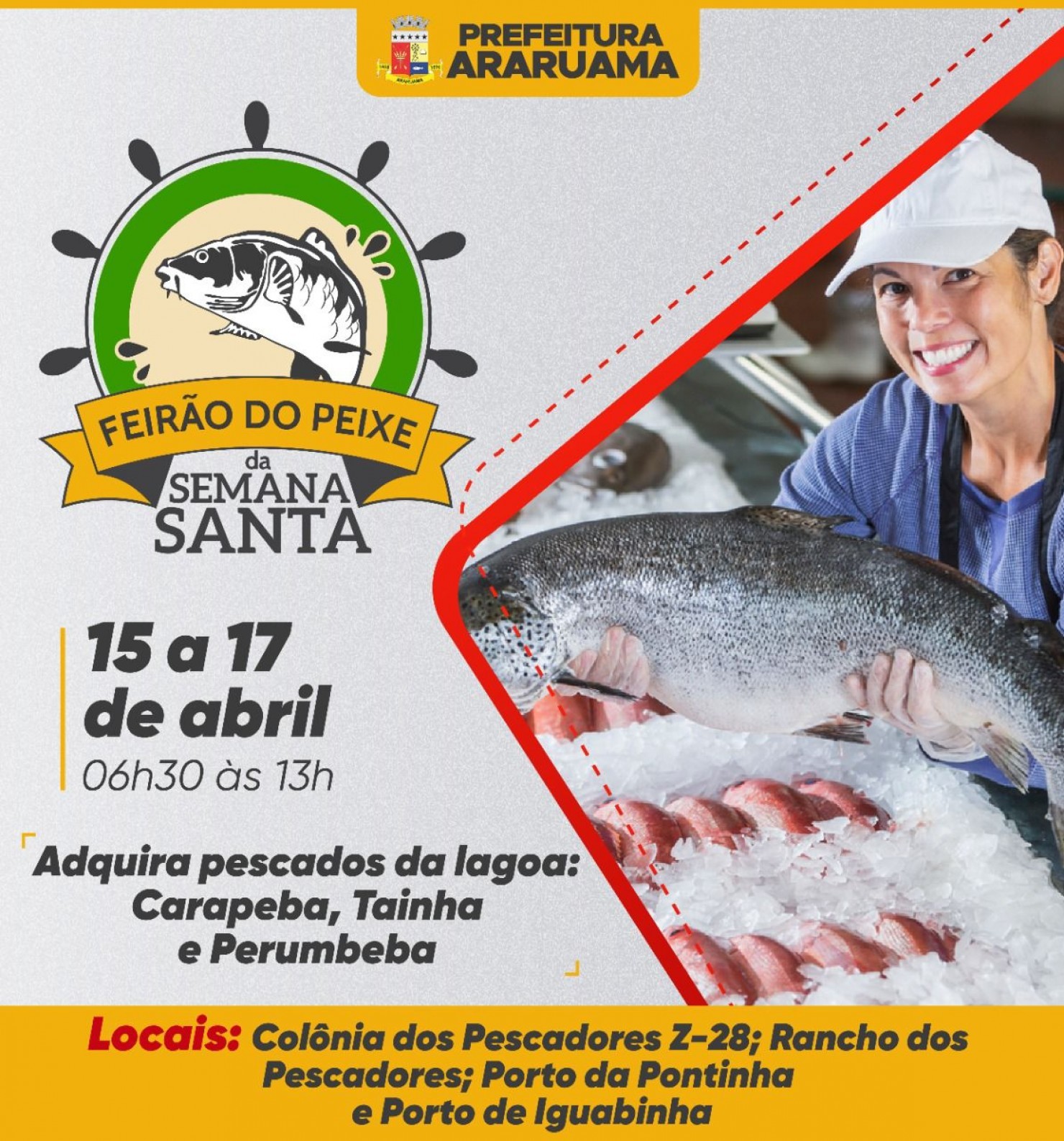 Essa é a proposta da sexta edição do Feirão do Peixe da Semana Santa, que será realizado pela Prefeitura de Araruama, por meio da Secretaria de Ambiente, Agricultura, Abastecimento e Pesca.