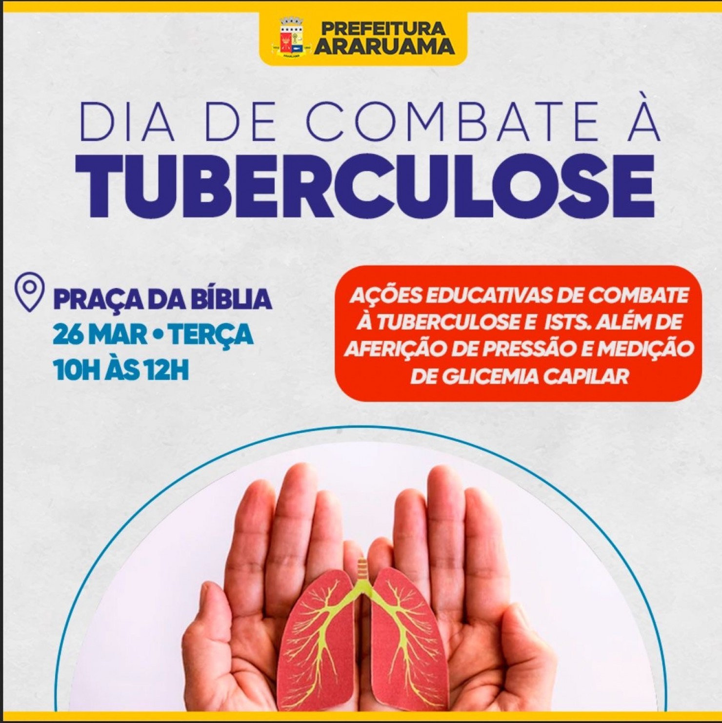 A ação vai acontecer no dia 26 de março, na Praça da Bíblia, centro, das 10h às 12h.
