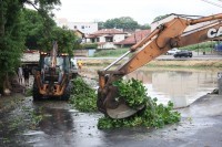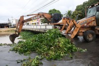Paralelamente, as equipes da Secretaria Municipal de Serviços Públicos continuam com os trabalhos de limpeza preventiva e dragagem do Rio Mataruna, ações fundamentais para evitar inundações. No local, estão sendo utilizados uma escavadeira, duas retroescavadeiras e quatro caminhões, que atuam na retirada de plantas aquáticas, como as gigogas, e na desobstrução do leito do rio, especialmente na região da Ponte do Rio Mataruna, melhorando o escoamento da água.