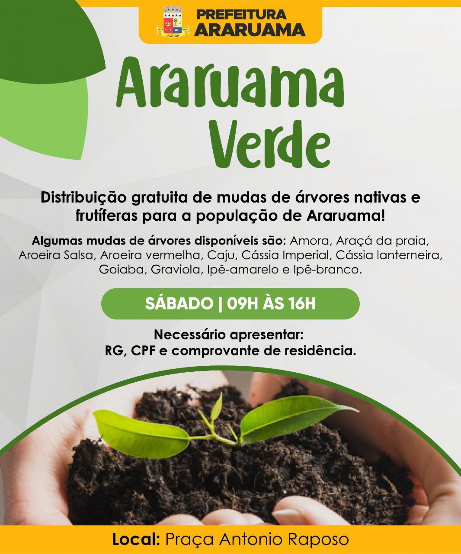 A iniciativa faz parte do projeto Araruma Verde, que tem promovido um verdadeiro reflorestamento no município. Para ter uma ideia só no ano passado foram distribuídas mais de 3. 800 mudas; esse ano até agora já são 2.532.