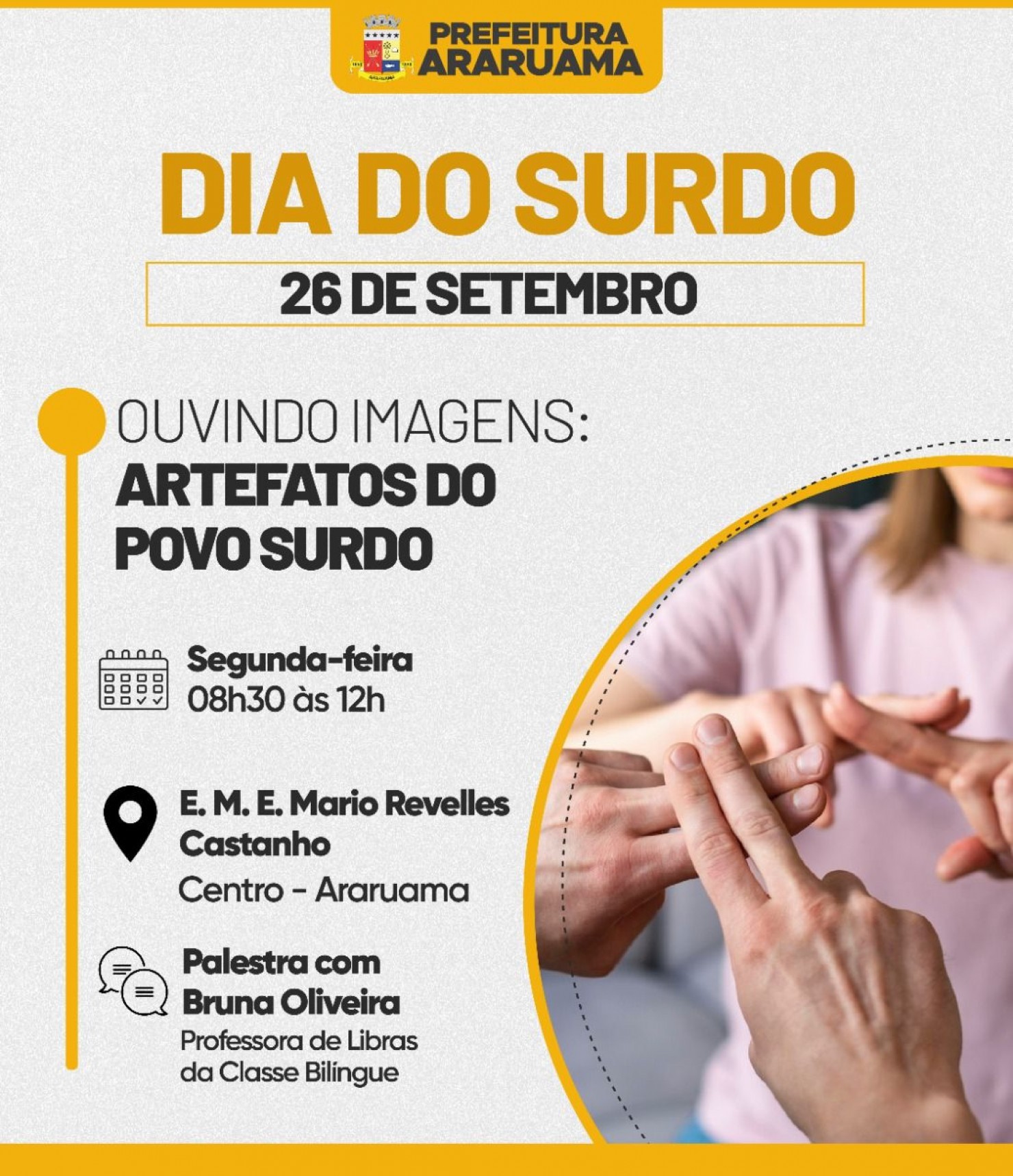 O tema será: Ouvindo imagens: Artefatos do Povo Surdo.