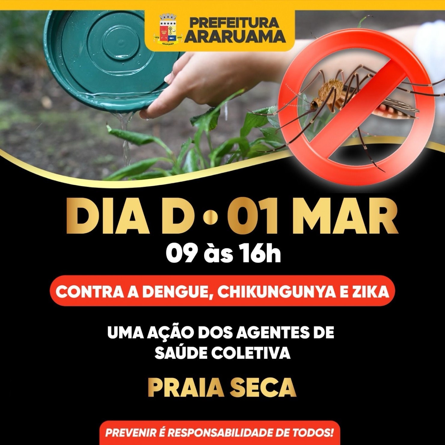 Vale ressaltar que além da dengue, que pode levar a morte, o mosquito também é transmissor da chikungunya e zika; e cabe a cada um de nós fazer a sua parte; poder público e população juntos para eliminar o Aedes Aegypti.