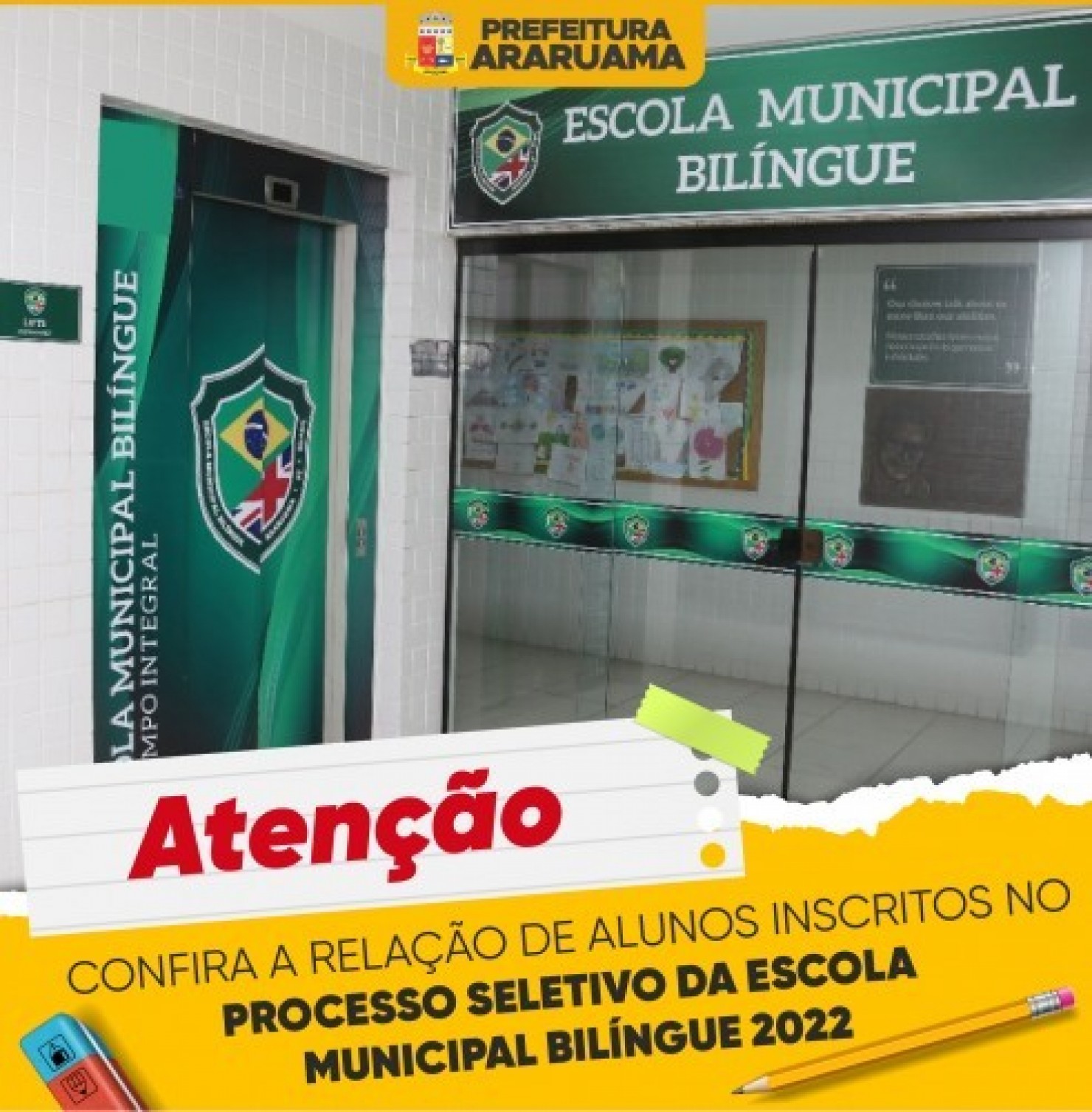 A Prefeitura de Araruama, por meio da Secretaria de Educação, torna pública a relação de todos os alunos inscritos para a prova de seleção da Escola Bilíngue Antônio Luiz Pedrosa.