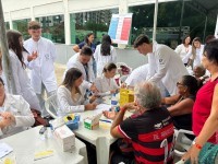 A ação também ofereceu atendimentos de saúde aos participantes, incluindo aferição de glicose, verificação da pressão arterial e outras práticas voltadas ao cuidado com os idosos.